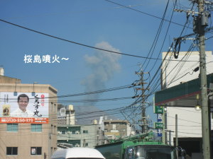 そして、ホームセンターまで連れてって貰って、お買い物。台車も無事買えました。そして車に戻ってみると、車に灰が〜〜〜。どうやら桜島が噴火してる模様・・・。でも灰!灰!って言ってるのは私だけで、みんな気にしてないのよね。(苦笑)