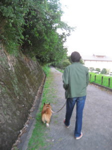 そして一旦ホテルに戻り、旦那の買い物をしに天文館へ行き、食事に行く前に・・・とアトムのお散歩に出掛けました。買った台車を早速使ってみると、こっちの方がアトムも良さそう。