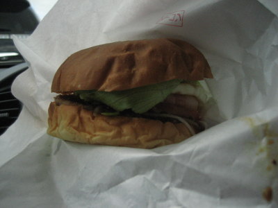 今日も車はそこそこ多く、SAも混雑してる。今回はレストランには入らずに、目に付いたものを買って食べよう〜って事になり、まずは宮原SAで「佐世保バーガー」 ん?佐世保バーガーって何が特色だっけ?と思う程、特に・・・。(^_^;) 帰ってPCで検索すると具沢山が売りらしい。なんか違うような・・・。(笑) これじゃ足りないかなぁ・・・とたこ焼きを買うも、これもなんか違う・・・。(爆)