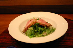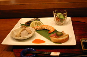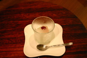 アトム用に椅子が用意されていたけど、その上にいられるはずもなく〜〜〜。小型犬にはバッチリだけどね。(^_^;) 料理は新鮮な魚介類が中心。どれだけ出てくるんだろ〜食べきれるかな?と心配するくらい。残さずとっても美味しく頂きました。ビールも進む、進む。ローストビーフとシャーベットの間にはチャーハン?ピラフ?があったけど、写真撮るの忘れて食べちゃいました・・・。(苦笑) ご馳走様でした〜♪