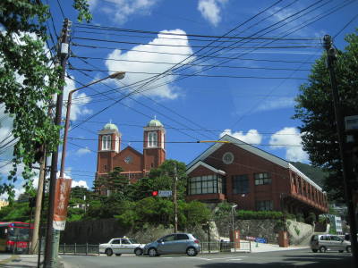 買い物を済ませた後、さて何処に行こ〜? ホントは「龍馬伝」の関係から亀山社中記念館とかに行こうかと思っていたのだけど、あまりに蒸し暑いのでバテそうだし、とりあえずアトムのお散歩も兼ねて平和公園方面へ行く事にしました。