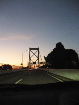 長崎道に入り、鳥栖ジャンクションの手前のSAまで私が運転して旦那に交代。途中、筑紫野ICから大宰府ICの工事渋滞を抜け、古賀SAで休憩。6時半頃関門橋を通過。