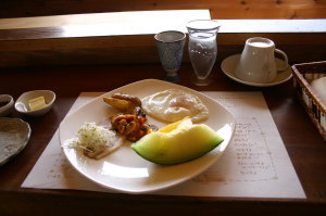 朝ご飯は8時から。それまでにアトムは軽くお散歩して、旦那は部屋のお風呂で朝風呂。私は、昨日撮れなかったので写真をパチリ。