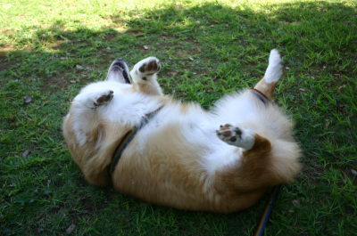 日陰じゃないと暑過ぎる・・・。こちらの心配をよそに、アトムはテンションUP〜。めちゃくちゃ楽しそうでお散歩したくてたまらないって感じ。