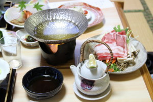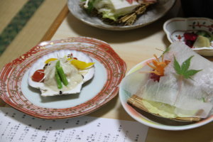 16時過ぎには宿に到着。アトムはリードでそのまま部屋まで行けます。もちろん部屋の中はフリー。なんとこの宿はレトリバークラスの大型犬もOKらしい。宿の方が犬を飼ってるらしく、旅行先で宿泊先を探すのが大変・・・とおっしゃってました。そんな事がペットOKの一因になってるみたい。有難い存在です。部屋はロビーに一番近い場所だったけど、なんと!贅沢に2部屋。もう1部屋は食事の部屋になっているのでした。部屋の中にユニットバスもあるのだけど、4つの貸切風呂があるので、空いていればどこでも入れます。なので、私も人目を気にせずに温泉に入りに行けました♪
