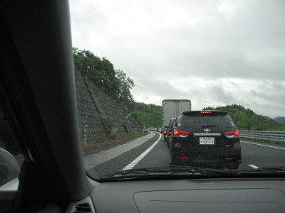 吉備SA、次は龍野西SA。ここでいつもアトムを休憩させるのに、降ろせる雨じゃなかったのが残念。そして旦那と運転交代。3連休初日なので車が増えてきた。雨の為に姫路東〜が通行止めなので、姫路西ICで高速を下ります。出口渋滞が2キロの表示。(-_-;) でも、もっと長かった気がする・・・。渋滞で並んでる横の追い越し車線をびゅんびゅん車は通過して行く・・・きっと先で合流するんだろう・・・。こっちはずっと並んでるんですけどーとブツブツ言いながら(私がね(^_^;))、結局下りるだけでどのくらい時間がかかっただろうか。