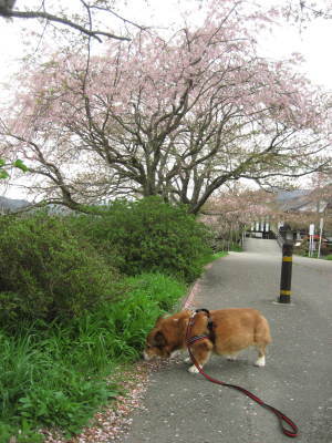 そして駐車所の近くでアトムのお散歩。不思議な事に、参拝するのに車でお留守番させた時、どの場所でも一回も吠えなかったアトム。何か気配を感じてたのかしら〜。(^_^;) いい子でお留守番出来ました。