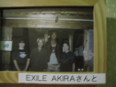 夕食は18時半にお願いしました。囲炉裏のあるお食事処で頂きます。そこに向かっていると壁に写真や新聞記事が貼ってあって、何気に見ると、ナ・ナ・ナント、EXILEのAKIRA様の写真があるじゃないですかぁ〜〜〜♪ 3年くらい前に映画「半次郎」の撮影に菱刈に来た時に、ここに泊まったみたい〜♪ 思わずミーハーしてしまいました。あ、もちろん主役の榎木孝明さんの写真もありました。