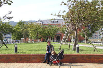 駐車場に車を止め、アトムをカートに乗せて散策開始。
