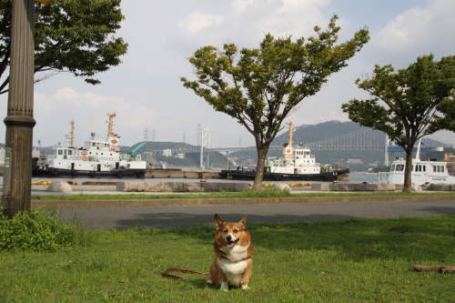 関門橋をバックに・・・。