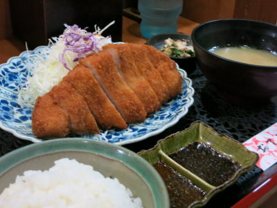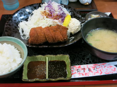 鹿児島市内に到着し、いつものように山形屋でお土産を買って、お昼は天文館の「とんかつ 十兵衛」で黒豚のトンカツ。前にもここで食べた事あったみたい。