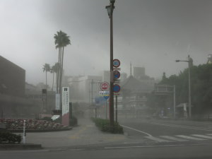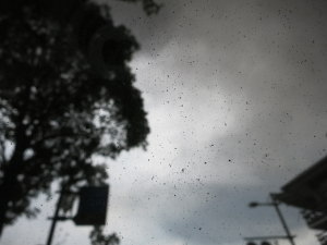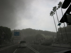 辺りは真っ暗。どうやら桜島が爆発した模様・・・。後少し車に戻るのが遅かったら、この中を歩くところでした。(>_<) 車のフロントガラスにも黒い物体が↑