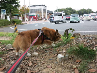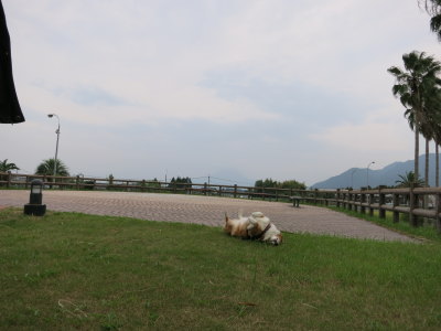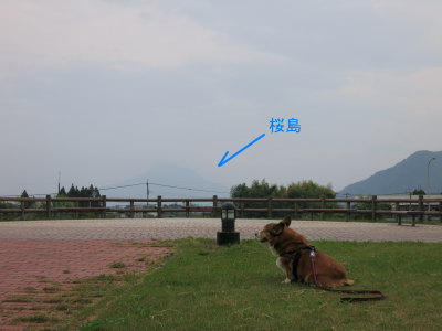 アトムは買い物中も、旦那の実家でもずっと車でお留守番だったので、まずは桜島SAでお散歩。