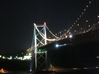次の福岡の古賀SAには7時半過ぎに到着。ここは大きなSAなのでお土産を物色。ここでアトムの晩御飯。次は関門橋を渡る直前のめかりPAに寄る事に。