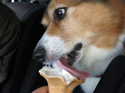ここも車がいっぱい。広場もあったりするので、犬連れの人も何組か見かけました。アトムは足がイマイチなので車で待機。少し買い物をして、一緒にソフトクリームを食べました。