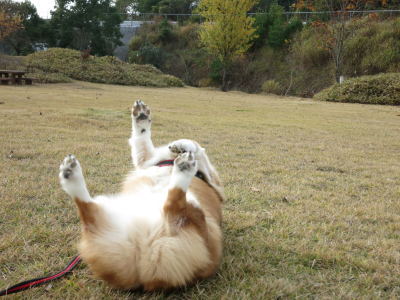 勝央SA(上り)にはドッグランがありました。アトムはドッグランは使わないのだけど、お散歩をしてるとこっちをちらちら見てるご夫婦が・・・。そしたら2匹のコーギーが車から下りて来ました。1匹は車椅子を装着して貰ってた。ご主人が抱っこした女の子と挨拶をさせようと、アトムを抱っこして近づいたけど、お互いガウガウなので断念。(苦笑) アトムは毎度のように「大きいですね〜」と言われた。(笑) あまりお話も出来ずだったけど名古屋のナンバーの方でした。