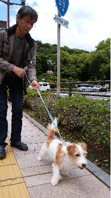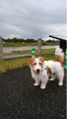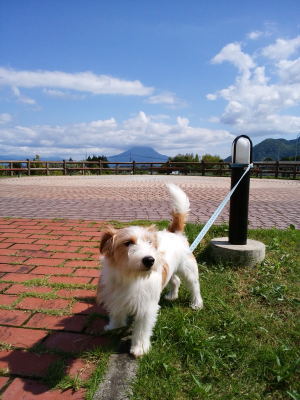 宿2日目の朝。お散歩出来そうかな?と外へ。少し霧雨のような感じだったけど、行っちゃえ・・・とアポロとお散歩。
