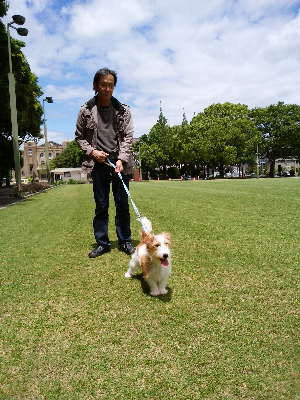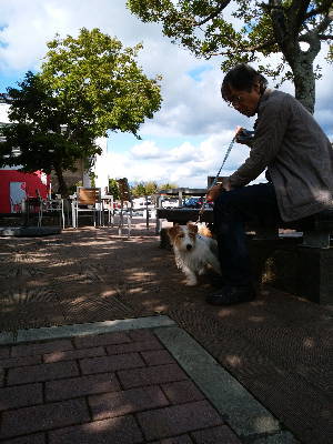 まずは会社関係などで香典を貰った人にお返しする祖供養を買いに山形屋へ。商品を決めて包装をお願いして、その間にお昼ご飯を食べに行った。今回も鹿児島ラーメン「こむらさき」。その後、少しお土産を買って車に戻って、アポロのお散歩。とりあえず西郷さんの銅像の前で記念撮影をしようにも、テンション上がってお座りさえしない。(-_-;) でも、鹿児島らしい場所で初めてお散歩出来たかな・・・。