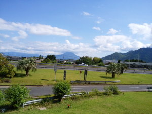また朝ご飯の後に旦那は寝てしまい。1人で後片付け。結局、チェックアウト時間ギリギリに出発。10時45分頃、桜島SAに到着。ようやく雨も上がり、遠くに桜島が見えた。ここで旦那と運転交代。