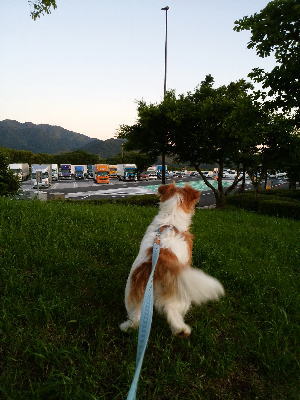 この後熊本で渋滞になるだろうから、その直前の宮原SAで休憩する事にした。16時過ぎに到着してアポロもお散歩。すっかりSAで止まるとお散歩する気マンマンのアポロ。(笑) そして16時40分頃、いよいよ渋滞の始まり。車線が1車線になる時に、少しでも前に行こうとする人、入れてくれずに突っ込んでくる人・・・譲ってくれる人・・・こんな時に人間性が出るよなぁ〜〜〜。