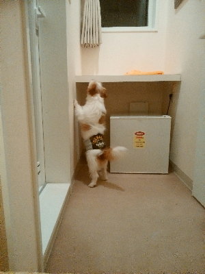 朝起きると結構な雨。8時頃朝食バイキングへ。我が家と入れ違いでAさん達が朝食にやって来た。そしてご飯終わりで部屋に遊びに来て、アポロと交流。