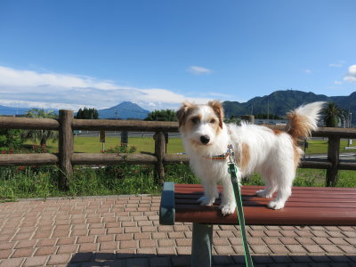 市内に到着して、お土産を買いに「山形屋」へ。パパッと買い物をして車に戻り、駐車場の上の公園でアポロのお散歩。お散歩中にあちこちから何台もの消防車がやって来た。向かってる方向を見ても煙は上がっていない。なんだか良くわからないけど辺りは大騒ぎ。