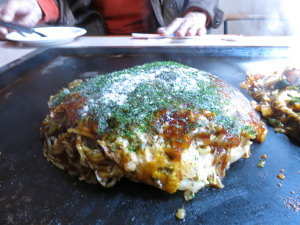 「すみチャン」には13時半頃到着。「広島風お好み焼き」と「尾道焼き」を1枚ずつお願いした。尾道焼きはイカ天と砂肝が入ってるのが特徴らしいのだけど、それをなぜ入れたのか不明。(苦笑) でもまあ久々のお店で食べるお好み焼きは美味しかった。
