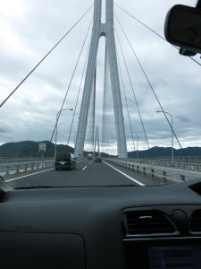 結局、いくつ橋を渡ったのだろうか? 段々雲が多くなって来た。1時間ほどで四国入り。途中、サイクリングでしまなみ街道を渡ってる人がいっぱいいた。