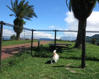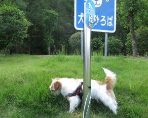 次の熊本の山江SAには16時前に到着。犬のひろば・・・って、ここにリードフックがあっても、何に使うのだ? ここに繋いで買い物したり、トイレに行く人もいないと思うけどなぁ。