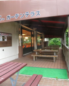次の福岡の広川SAには18時過ぎに到着。ドッグランとレストランの横に「わんわんガーデンテラス」があった。