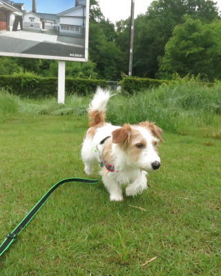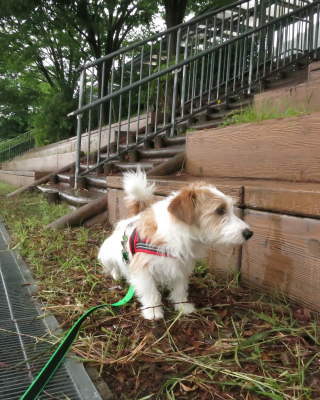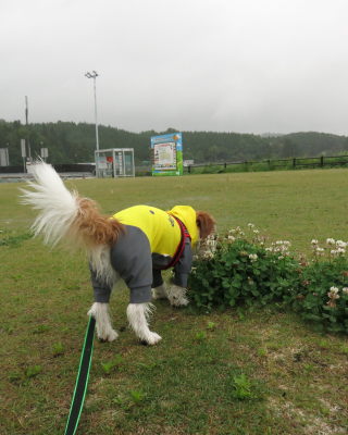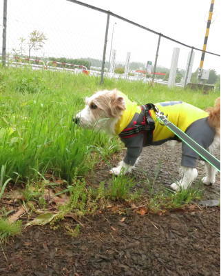 買い物をして車に戻ると、雨が小降りになっていたので、アポロのお散歩。