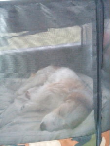 そろそろ疲れてきたのか? 旅慣れてきたのか? アポロは走行中は寝ている。