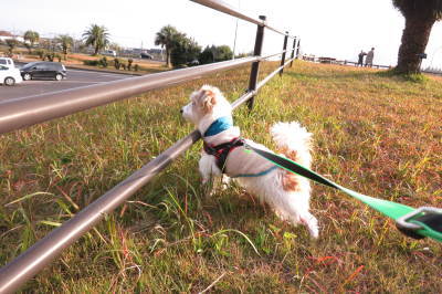 16時前に九州道の「桜島SA」でお散歩。ドッグランは先客がいたので、周辺のお散歩。給油をして出発。