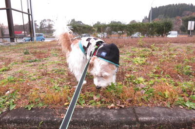 旦那実家に到着し、少ししてから追加の香典返しを頼みに行く為に出発。いつもの駐車場に止め、山形屋に。来たついでに、ちょこっとお土産の買い物をして、義母に頼まれたお寿司を買って車に戻った。そして中央公園でアポロのお散歩。