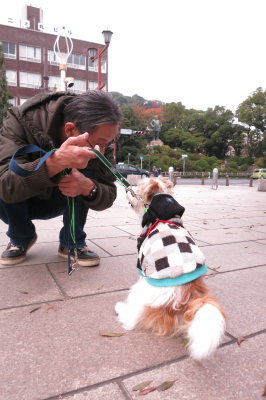 西郷さんの銅像の前で、一昨日のリベンジ・・・と思ったけど、お座りをさせると カメラに背を向けるヤツ→