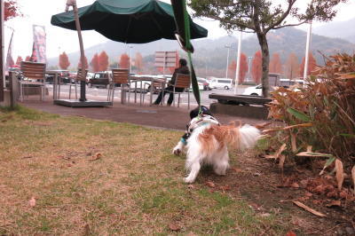 ゆっくりチェックアウトすればいいか・・・と思っていたけど、旦那がなるべく早く来て・・・と言うので、9時頃から出発の準備。1人で片付け、荷物運びをしなければいけないので、思ったより時間がかかる。(^_^;) 今年は3度もお世話になりました。チェックアウトをして九州道に乗り、旦那実家を目指します。9時40分頃「溝辺PA」でアポロのお散歩。
