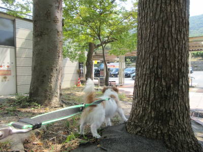 12時40分頃、「西紀SA」に到着。今日は土曜日なので、そこそこの人出。日陰でアポロのお散歩。
