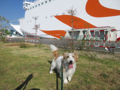 乗船前に、ペットのお散歩コーナーでお散歩。