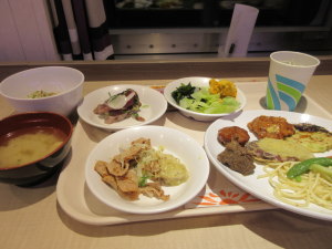 19時を過ぎて、アポロの晩御飯を準備して、レストランでバイキング。