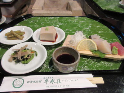 17時過ぎに「早水荘」に到着して、チェックイン。旦那はすぐに温泉へ〜。