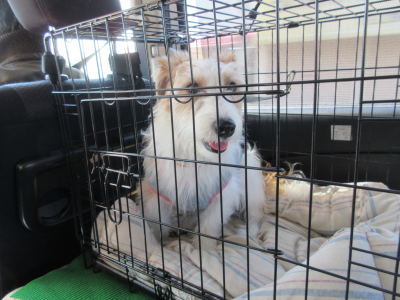 13時半頃到着。手続きをして、アポロを店内に連れて入ると、中にいた犬に興味津々で、サッサと連れられて行ってしまった。(^_^;) なので、アポロに「迎えに来るからねー」とか「ちゃんと待っててね」とか、何の話をしないままの別れ・・・。