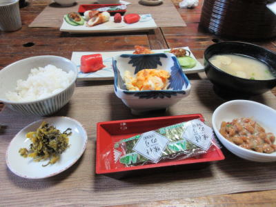 8時から朝ご飯。生卵が出てたけど、聞かれて、私は炒り卵にして貰った。