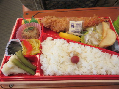 博多駅に到着して、予定していた新幹線より1本早いのに乗れそうなので、指定席を交換して貰った。お昼ご飯がまだなので、駅弁を買い、14時4分発のさくら553号に乗車した。
