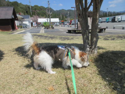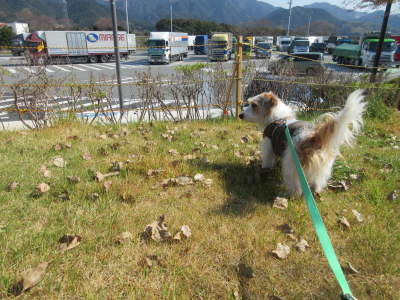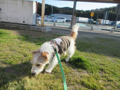 14時過ぎに福岡の「広川SA」に到着。ここは「ドッグラン」があるので、そこでアポロのお散歩。