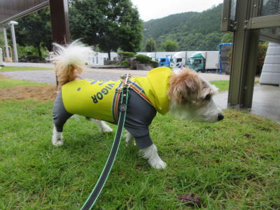 11時15分頃に「豊富PA」に到着。雨が止んではいないけど、少しアポロのお散歩。ここで旦那に運転を交代。