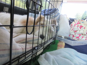 帰りの走行中はすっかりくつろぎモードのアポロ