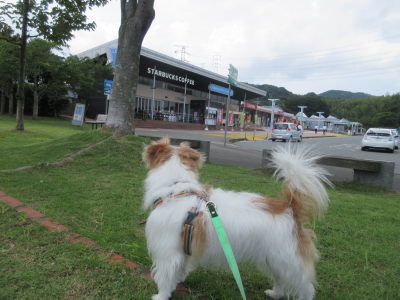 18時半過ぎに、山口の「佐波川SA」に到着。ここも初めて寄った。お散歩が出来るスペースがあって、いい感じ〜♪ でも蚊がいたけど。(^_^;)