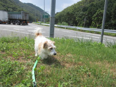 10時50分頃に兵庫の「豊富PA」に到着。少しアポロのお散歩。ここで旦那に運転を交代。