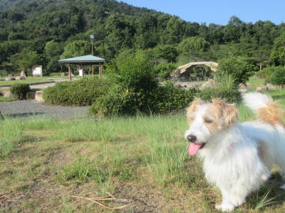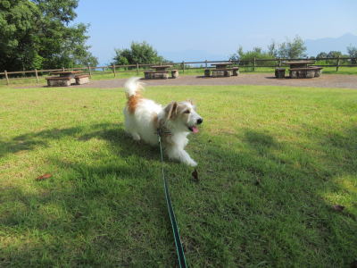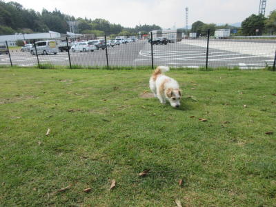 14時15分頃、広島の「小谷SA」に到着。このSAにはドッグランがある。しばらく工事中だったけど、もう工事は終了していた。先客なし。ここで旦那に運転を交代。
