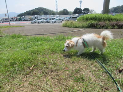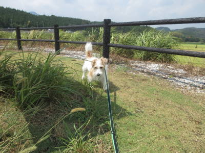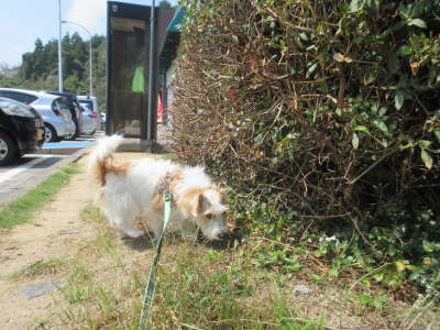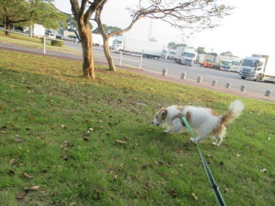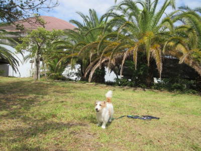 アポロを部屋に連れて行く前に、ちょこっとお散歩。